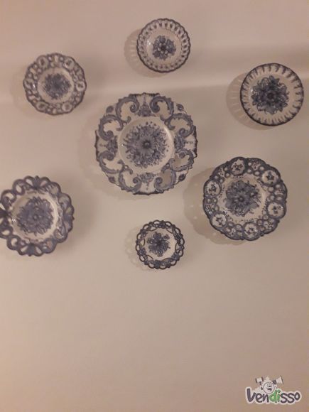 Vendo conjunto de oito pratos decorativos em faiança nacional. OBS falta um na imagem.
