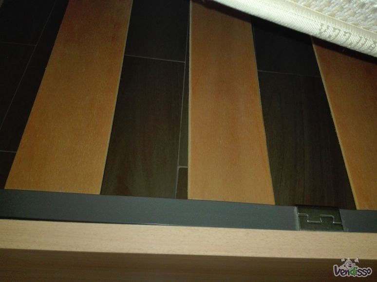 Vendo cama de casal, 1,95 x 1,40 com estrado de ripas fixo ao chão e mesa de cabeceira. Urgente motivo obras.