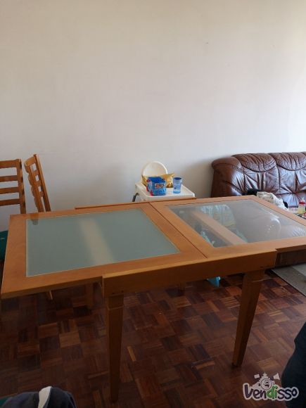 Mesa com tampo em vidro com as seguintes medidas 180x84 em aberto