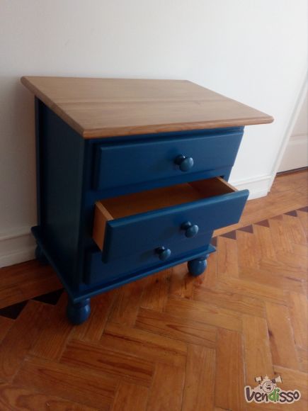 Somos um casal luso-germânico que vai imigrar para a Alemanha e gostávamos de encontrar novos donos para este móvel que gostamos muito. Chegou até nós em mau estado nós restauramos com carinho. Acreditamos em dar nova vida a coisas velhas e com história em vez de comprar tudo novo. Queremos encontrar alguém que a estime e que lhe dê bom uso :)
