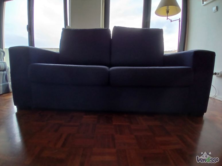 Sofá azul com 2 lugares (dá para 3 pessoas)