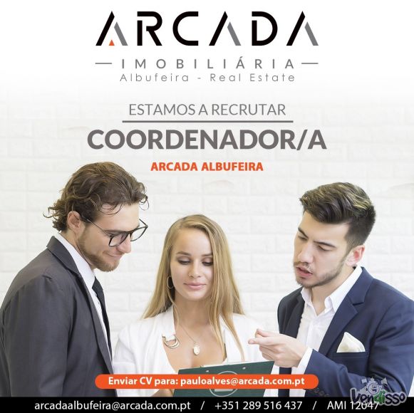 Estamos a recrutar Coordenador/a de Loja. A loja Arcada imobiliária localizada em Albufeira, procura coordenador/a de agência com experiência. Funções: - Atendimento telefónico, - Gestão de email, - Dinamização redes sociais; - Elaboração de posts para redes sociais e flyers - Apoio administrativo à equipa comercial; Requisitos: - Experiência na área; - Conhecimentos de informática na ótica do utilizador, multimédia e design. - Boa apresentação, - Disponibilidade imediata; - Responsável e criativa. - Inglês obrigatório oral e escrito (outras línguas valorizadas) Oferecemos: - Contrato de trabalho; - Salário-base + subsídio de alimentação, - Telefone da empresa, - Bom ambiente de trabalho. Envie o seu CV.